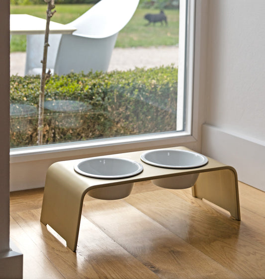 dogBar IN & OUTside M-small - Aluminium gold matt eloxiert mit Porzellanschalen