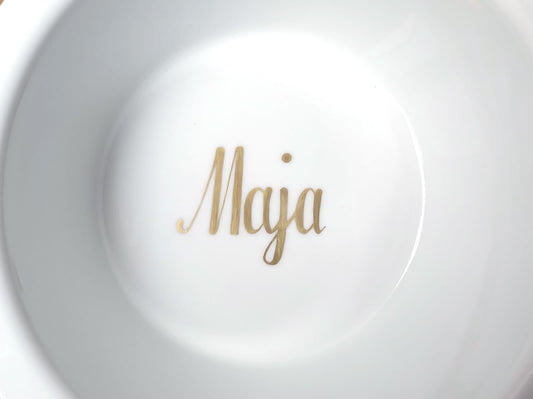 Die Personalisierung ist eine zusätzliche Leistung und setzt den Kauf einer dogBar mit Porzellannäpfen oder nur Porzellannäpfen voraus. Die Personalisierung wird von der Porzellanmanufaktur Reichenbach in Handarbeit hergestellt. Farbwunsch, Namen und Position ( Boden) bitte mit angeben.
