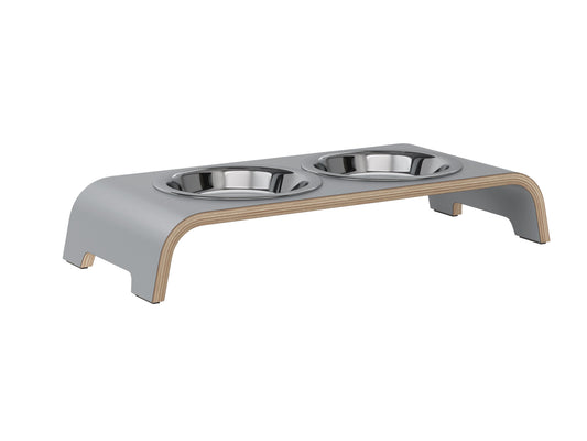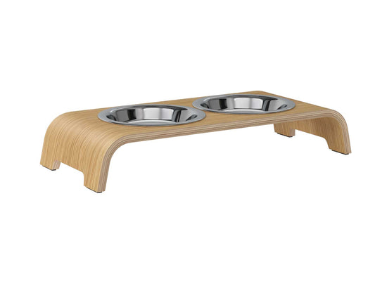 With the catBar, both will find their taste: its combination of solid real wood and porcelain bowls from the Reichenbach porcelain manufacturer makes it the most elegant feeding bowl for little velvet paws. The easily removable and dishwasher-safe bowls also ensure hygienic handling. Also available with highly polished stainless steel bowls.