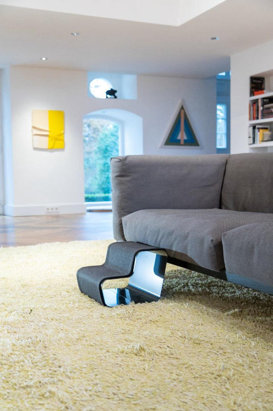 The dogBeam2 is a dog staircase with two steps that is impressive. Made in Germany from powder-coated steel, covered with washable fabric made from recycled PET bottles.