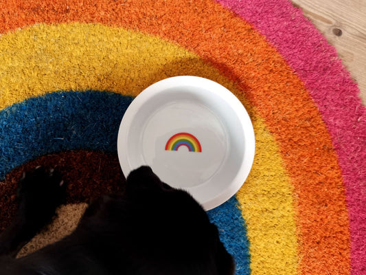 Would you like a rainbow in the catBar® / dogBar®? Then you must add this item to your shopping cart. Our porcelain bowls were fired again after the rainbow was applied and are therefore dishwasher safe.